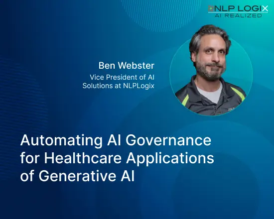 Speaker portraits with the article title “Automating AI Governance for Healthcare Applications of Generative AI,” highlighting expert discussion on healthcare AI governance, regulatory compliance, risk management, and responsible deployment of generative AI systems.
